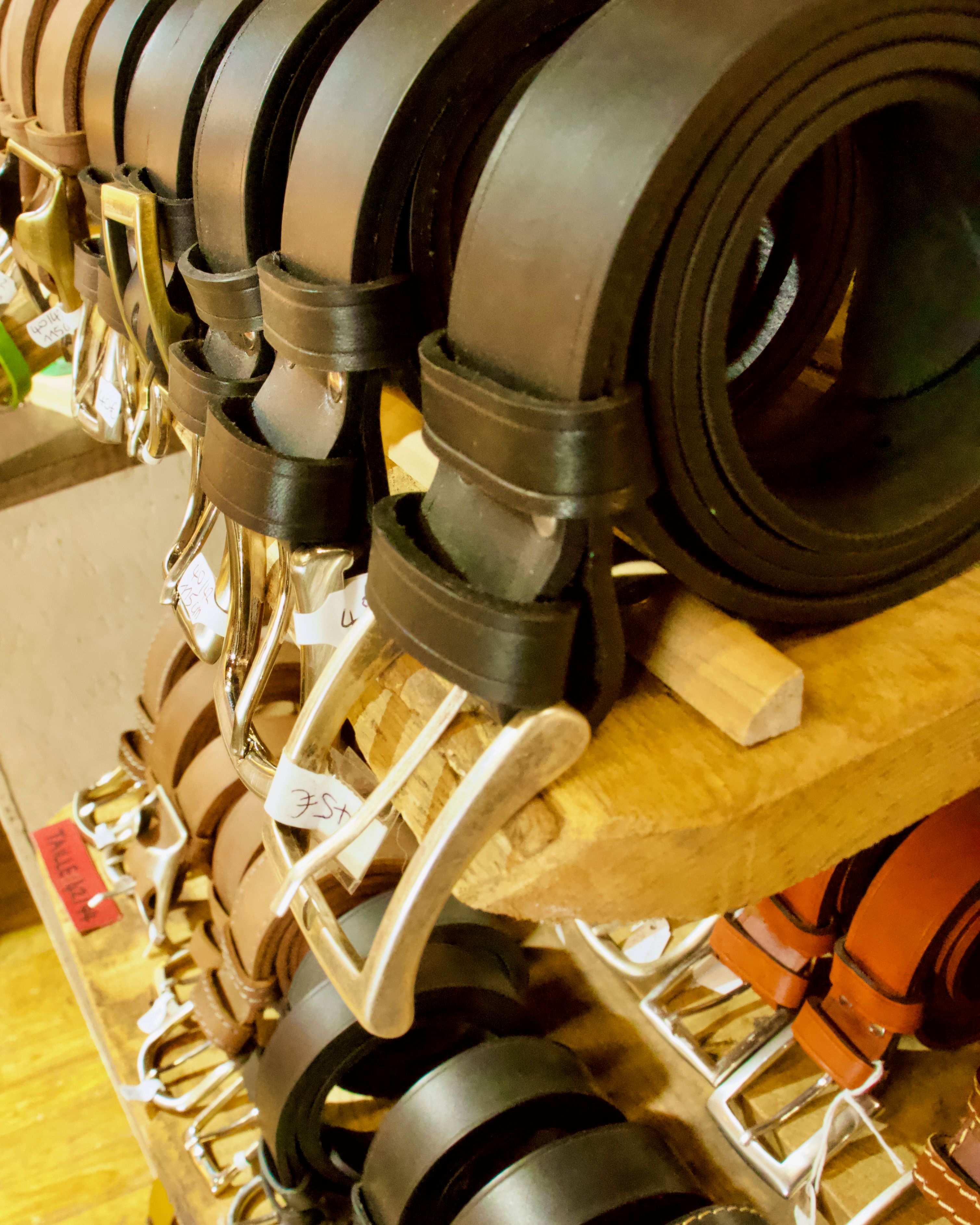 J’utilise surtout du taurillon. Tannés au chrome et retannés végétal, les cuirs sont résistants. Nourris avec des huiles animales et végétales ils deviennent souples et doux.